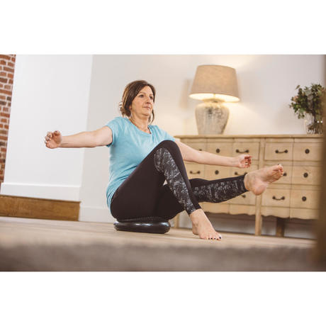 Öncelikle diskin üzerindeyken zemini hissetmemek önemlidir. Eğer hissediyorsanız diski bir pompa yardımıyla şişirin. Ardından seviyenizi belirlemelisiniz: Diski ne kadar çok şişirirseniz dengeniz üzerinde o kadar çok çalışırsınız. Aynı şekilde diski ne kadar az şişirirseniz o kadar dengeli olursunuz. Son olarak, üzerindeki çıkıntılar dengenizi daha fazla bozar ve kan dolaşımınızı hızlandırır.
