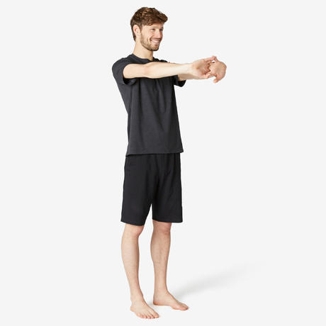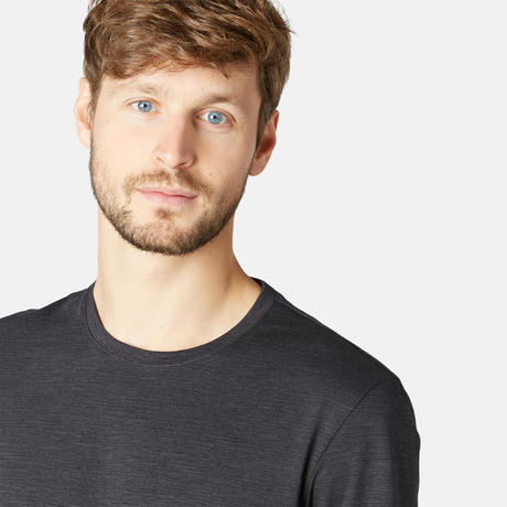 Erkek Baskılı Gri Spor Tişört / Pilates 500 Regular